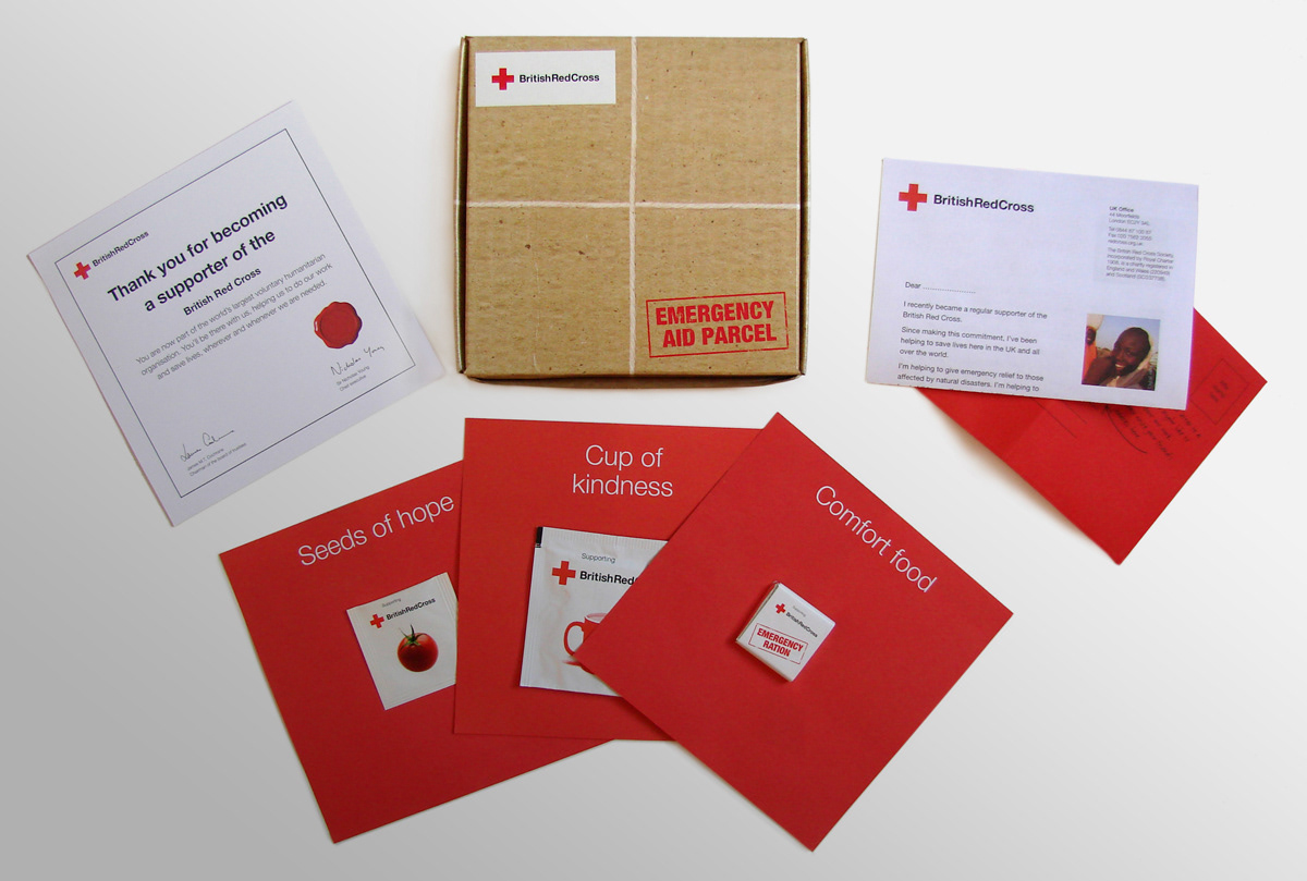 "You know when you see some advertising message and wish you had done it… Well the British Red Cross Welcome pack is exactly in that category. An “Emergency Aid Parcel “was put on my desk by a colleague who had just been signed up on the street by BRC. The parcel cleverly leverages the iconic Red Cross food parcel from years ago. (brown paper and string).