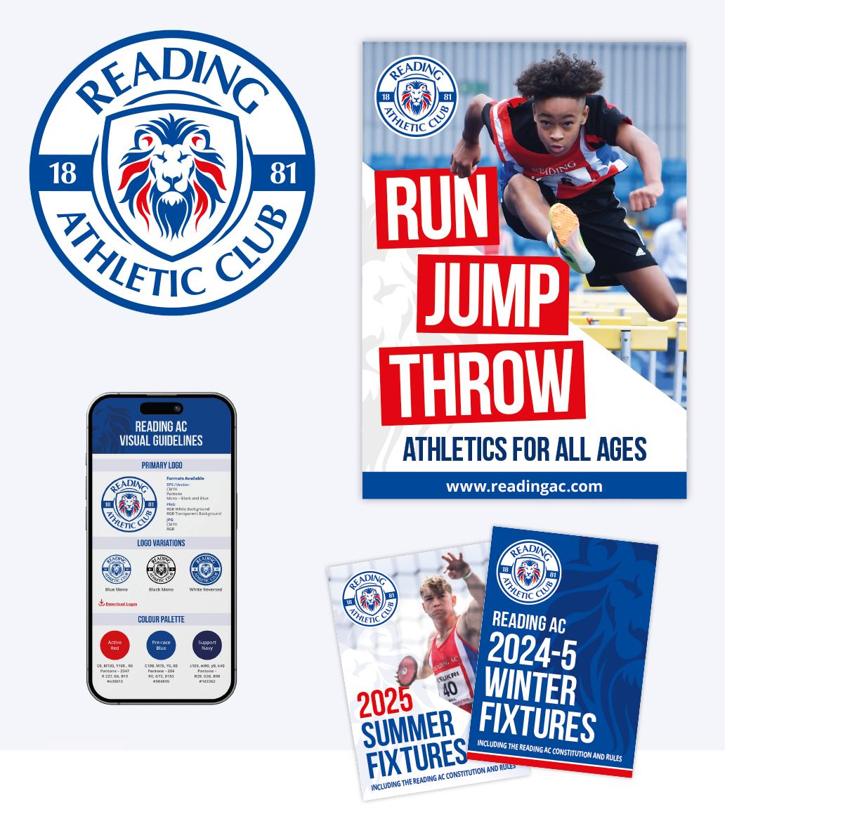 Reading Athletic Club is one of the oldest athletic clubs in the UK. With the rising interest in athletics, running and general fitness, Reading AC wanted to take the opportunity to position itself as a vibrant and exiting club for all, while keeping historical links to the town. A new logo featuring the Maiwand lion (a local landmark) and a more dynamic visual identity are now being used across all materials and kit.